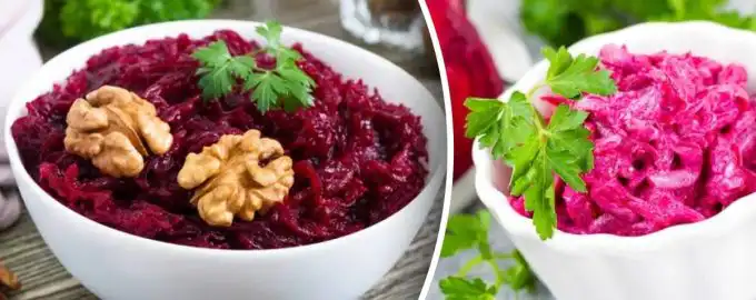 Resepti nopeaan ja terveelliseen juurikassalaattiin. Linkki kopioitu Juurikassalaatti – resepti / kollaasi: My, kuva: depositphotos.